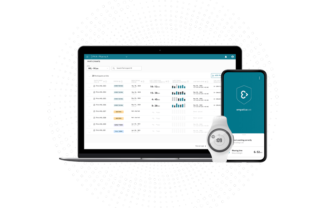 A web portal for professionals to easily manage participants across sites and monitor the digital biomarkers measured by EmbracePlus.