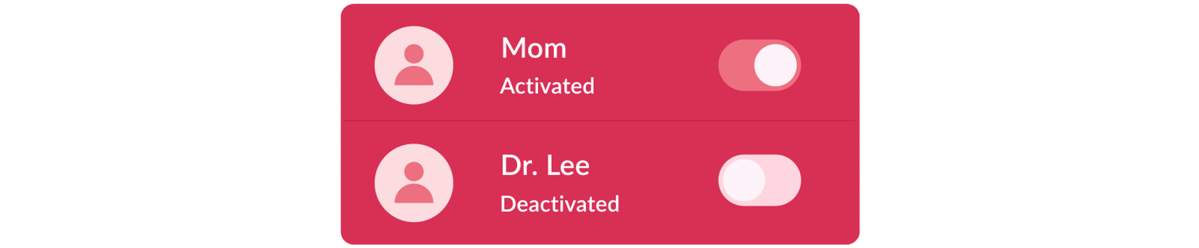 Caregivers can be activated and deactivated in the Alert App by tapping on the toggle next to their name. For example, if one of your caregivers is only available to help on Tuesdays and Wednesdays, you can set them as active on those days and deactivate them for the other days, while activating another caregiver.