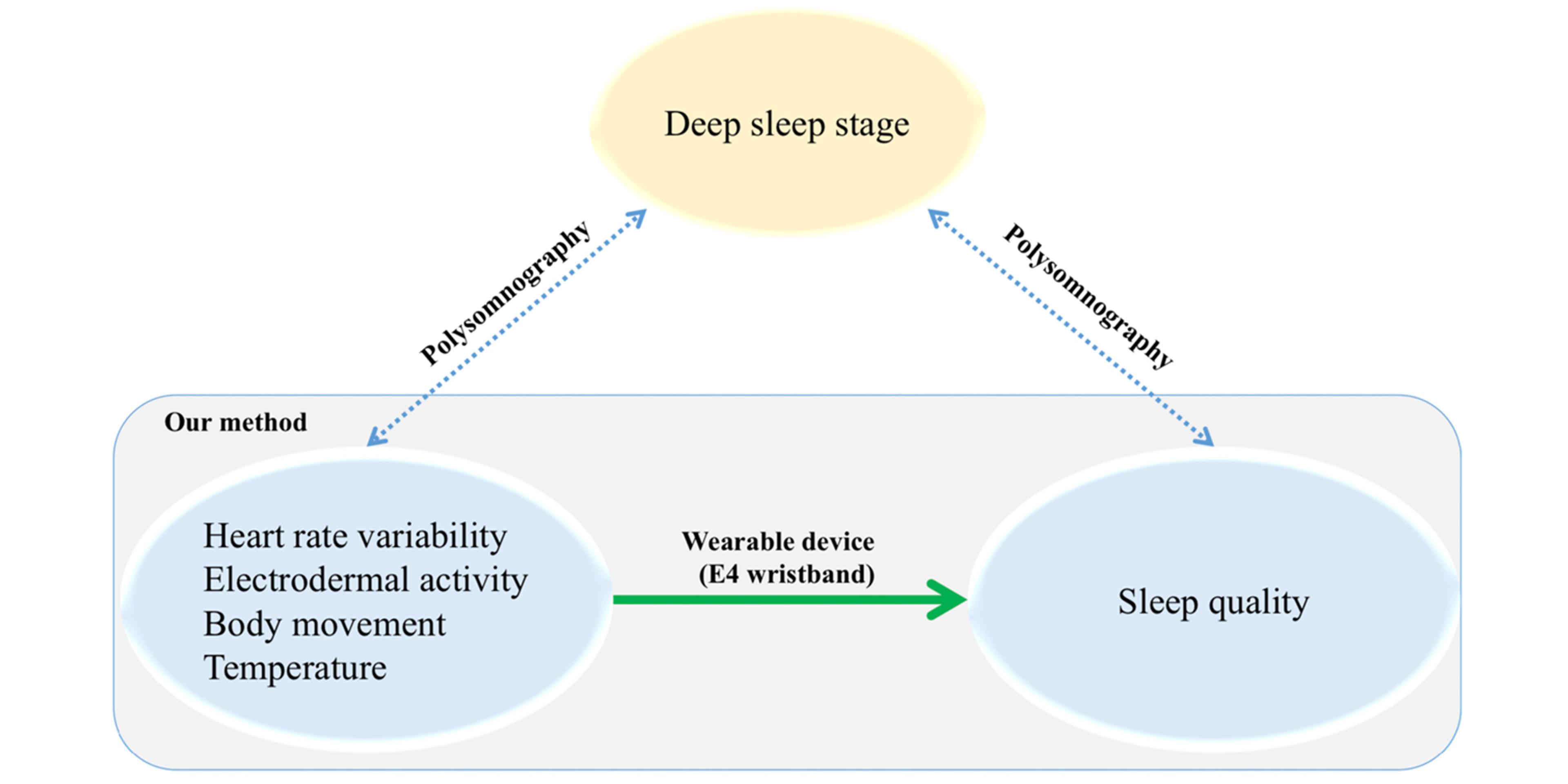 In our published work in Computers in Biology and Medicine, we predicted the sleep quality of CPWD by tracking the physiological signals’ trends in the deep sleep stage, which is the sleep stage most associated with sleep quality and fatigue recovery. As shown in figure 2, this sleep prediction strategy enabled us to reuse the sleep investigations that have been conducted by polysomnography. Indeed, we followed trends in the deep sleep stage of recordable physiological signals by the E4 wristband that have been verified by polysomnography studies.