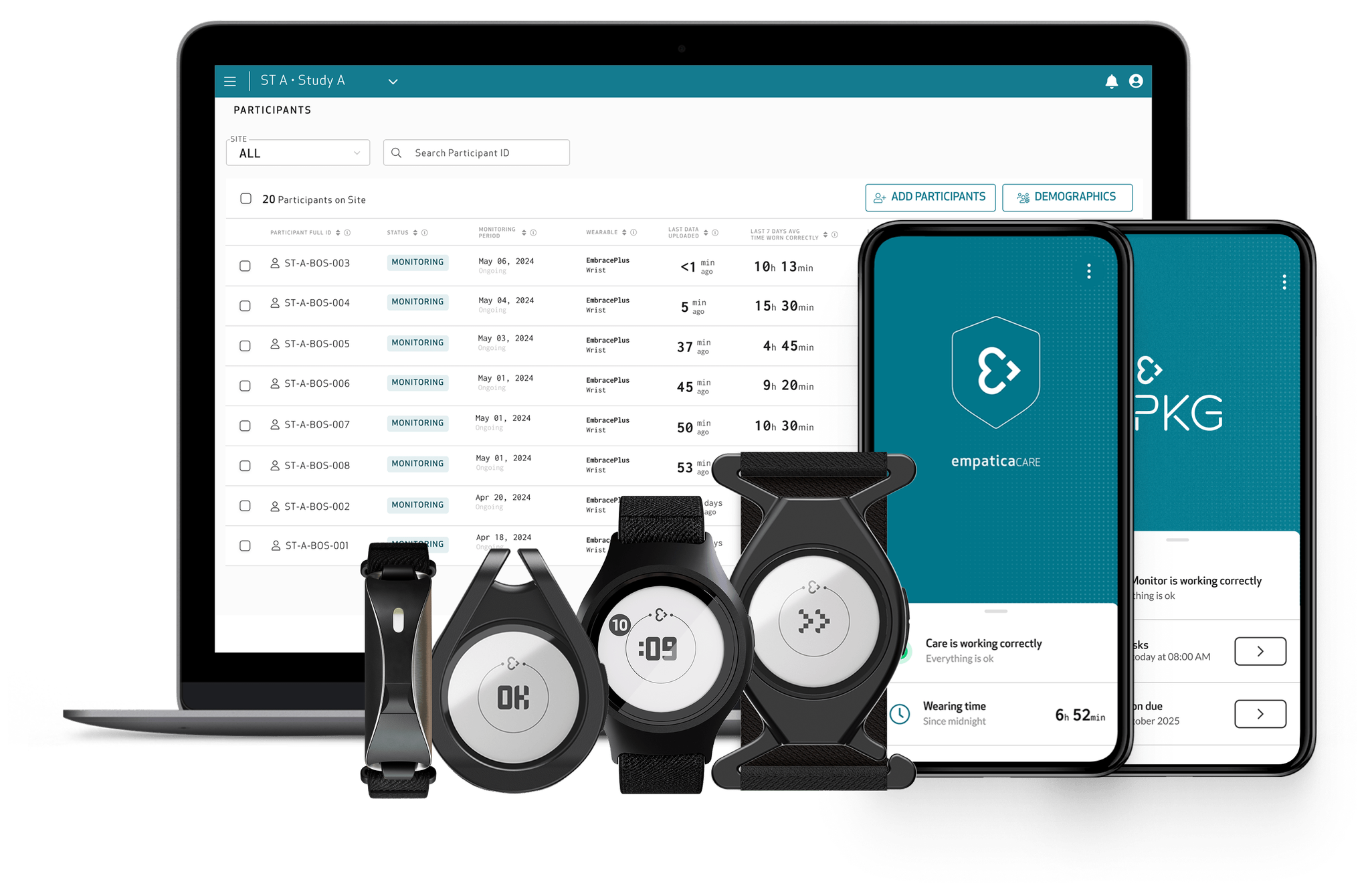 More than half of the top 20 pharmaceutical companies use the Empatica Health Monitoring Platform to monitor the impact of treatments and to develop novel digital biomarkers that can be used as digital endpoints. Talk to our team to see how your research can benefit.