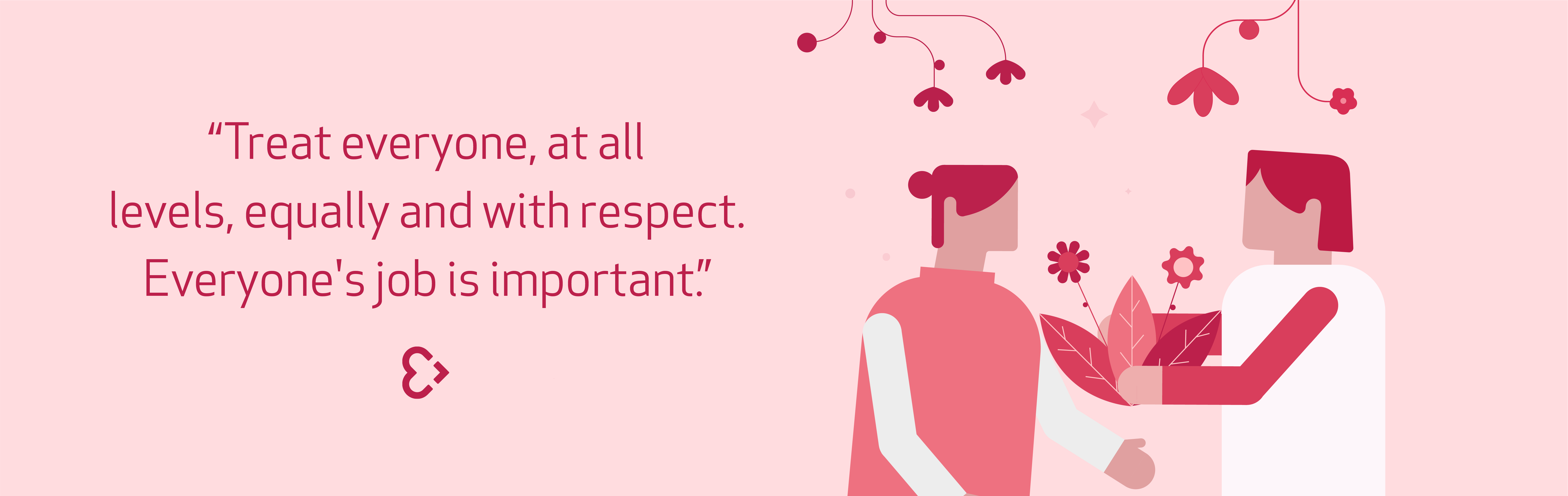 - “Treat everyone, at all levels, equally and with respect. Everyone's job is important.”