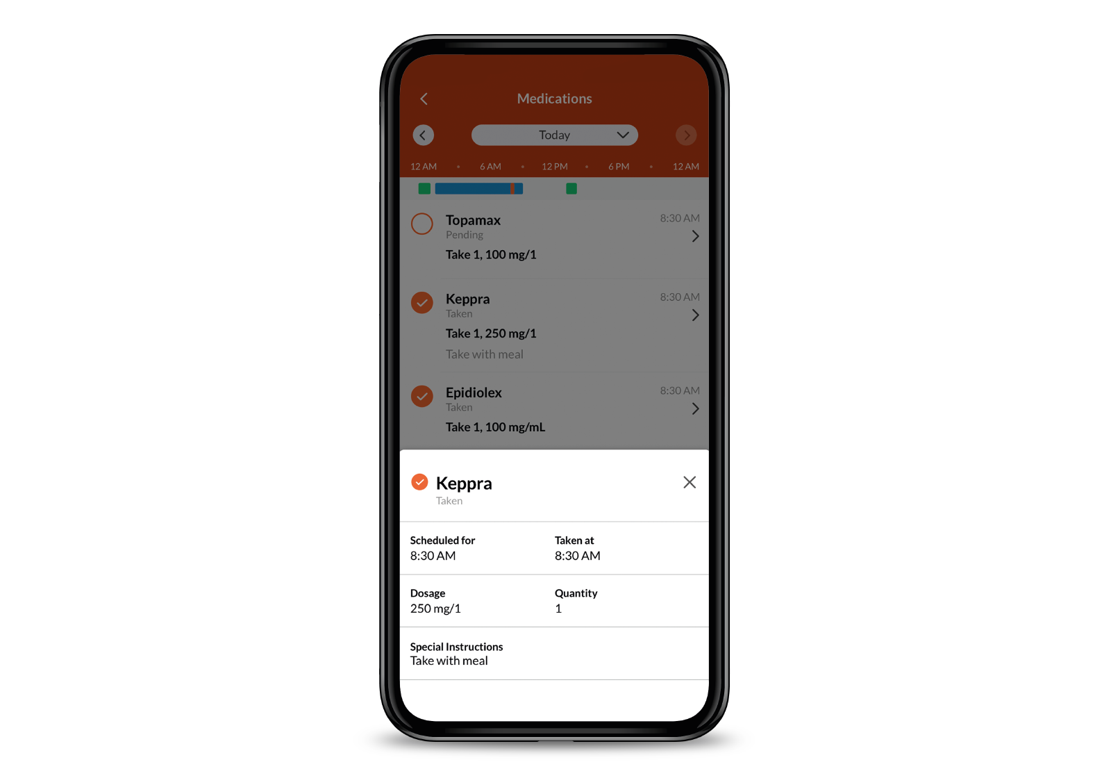 For the first time in the Mate App, you can set automatic medication reminders to help you remember the exact time you need to take your medication. You can also now see your medication adherence, alongside your seizures, rest, and physical activity data at a glance on the Mate wheel. With this, you’ll not only remember to take your medications on time, but you have a complete seizure diary and medication history to show your doctor. It’s also one less thing to remember for your caregivers, who can now worry less about your medication regimen because they’ll be able to keep track of your adherence through your Mate App. Caregivers can also download the Mate App on their phone to see if their loved one has remembered to take their medicine.
