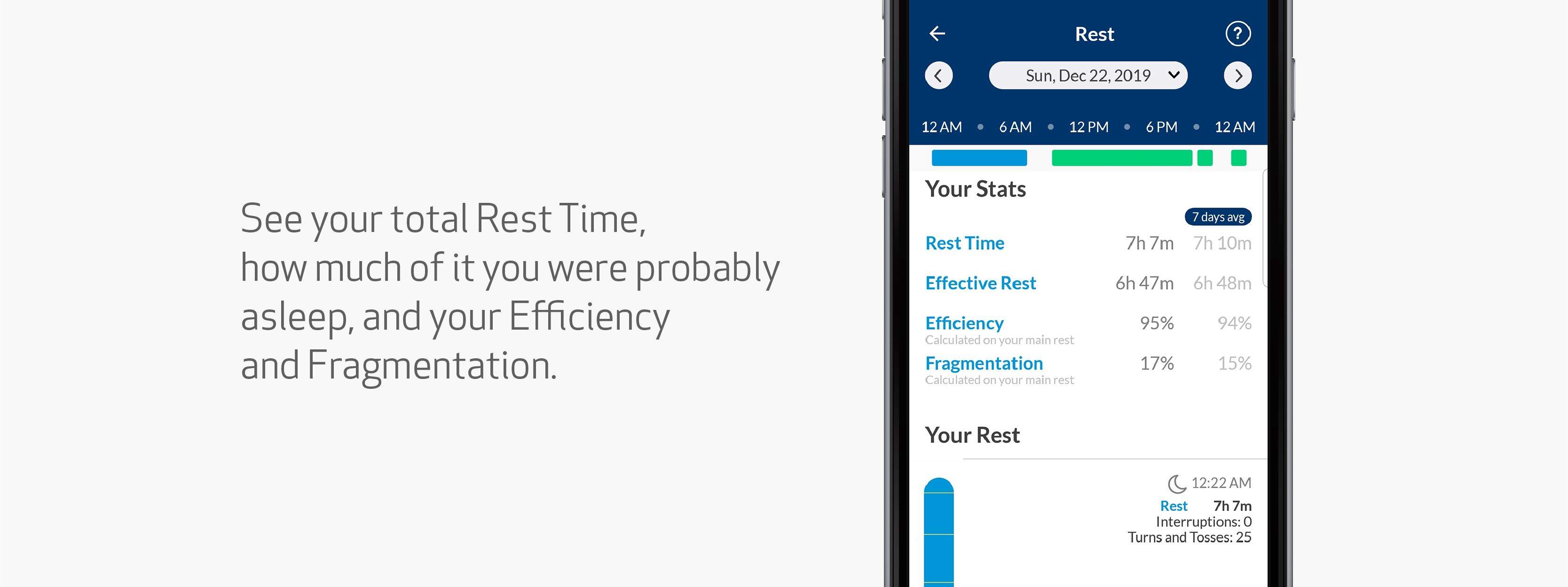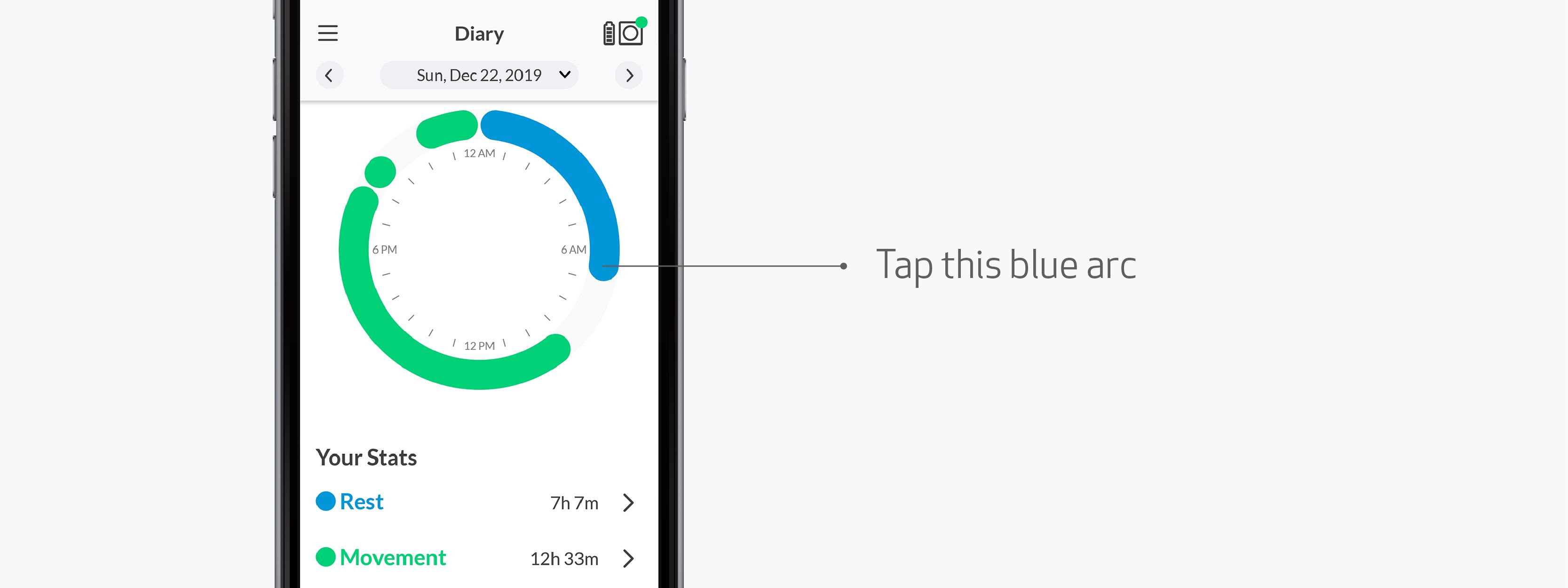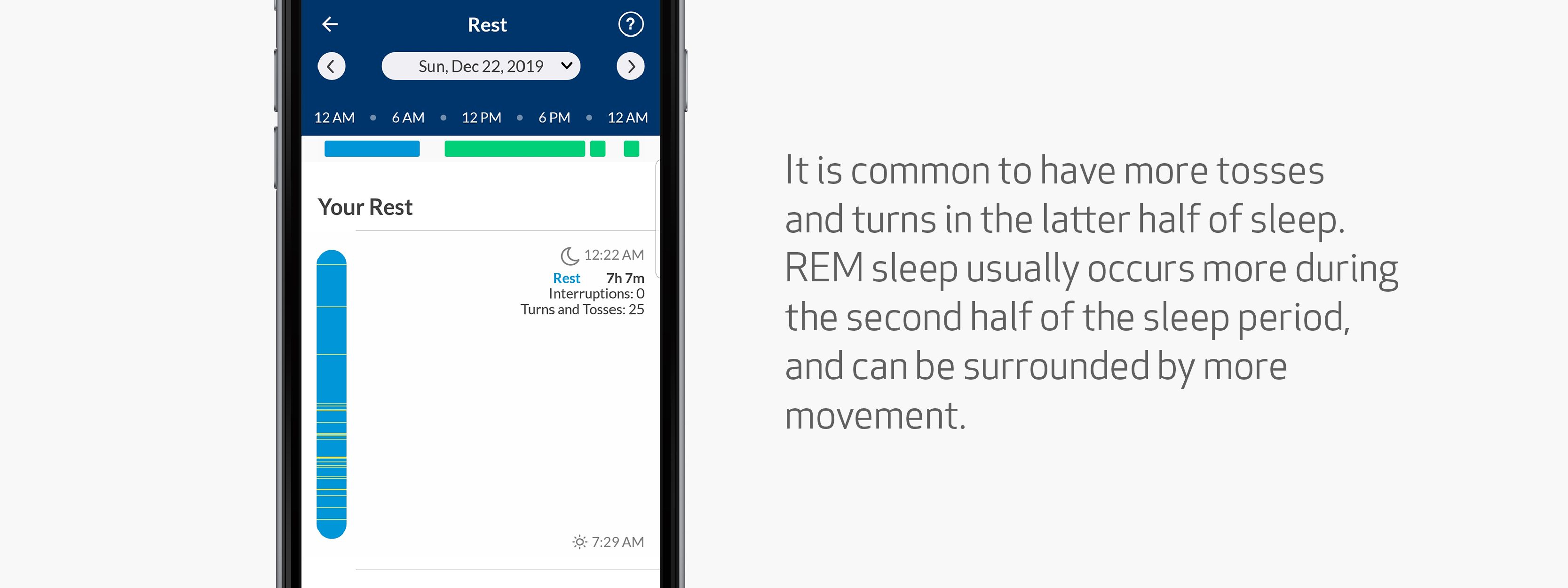 If you wear Empatica’s Embrace, it’s easy to monitor features related to your sleep, so you can learn more about what works best for you. Just open the Mate App, and tap on the blue “rest” part of the circular graph.