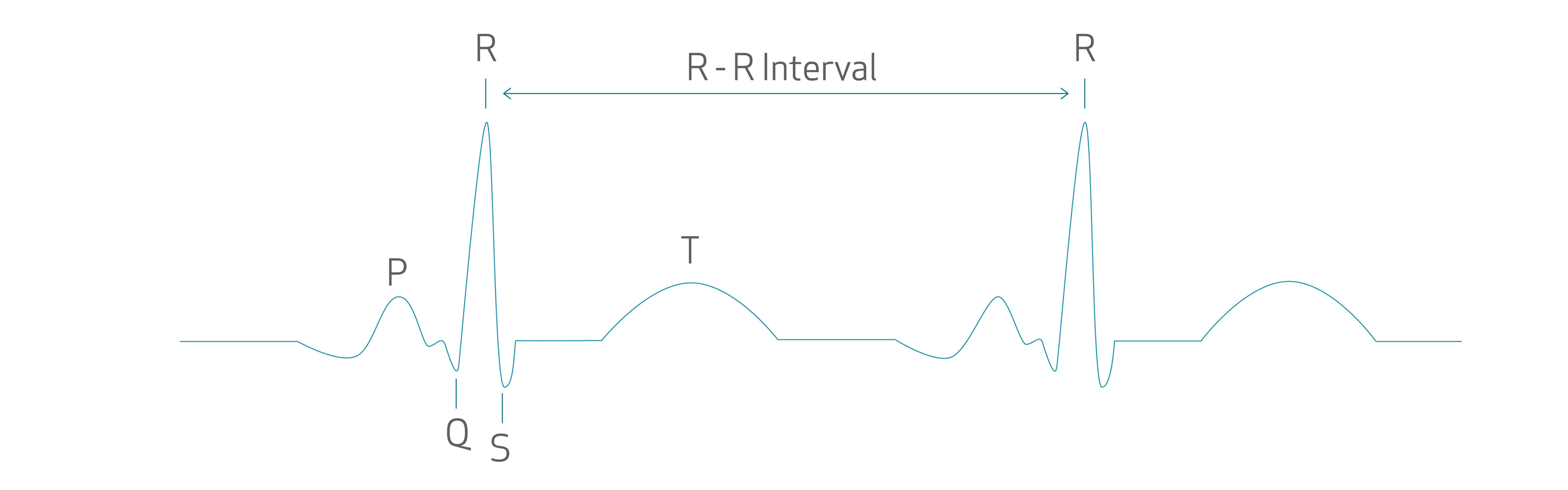 Heart rate (HR) is a measure traditionally computed from the ECG, and thus is derived from electrical cardiac activity. The ECG signal is recorded by placing electrodes in contact with the skin - usually on the chest but also sometimes on the wrists. This ECG represents electrical cardiac activity. The electrical activation of the heart's main pumps - the ventricles - is reflected in an ECG signal via the 'QRS complex'. The dominant peak of this QRS complex is known as the 'R wave'. Heart rate is typically calculated by considering the average time between adjacent R wave peaks (referred to as the RR interval). This rate can be changed or modulated by the central (autonomic) nervous system in response to various internal stimuli (e.g. respiration, CO2 levels in blood, etc.) and external stimuli (e.g. stress).
