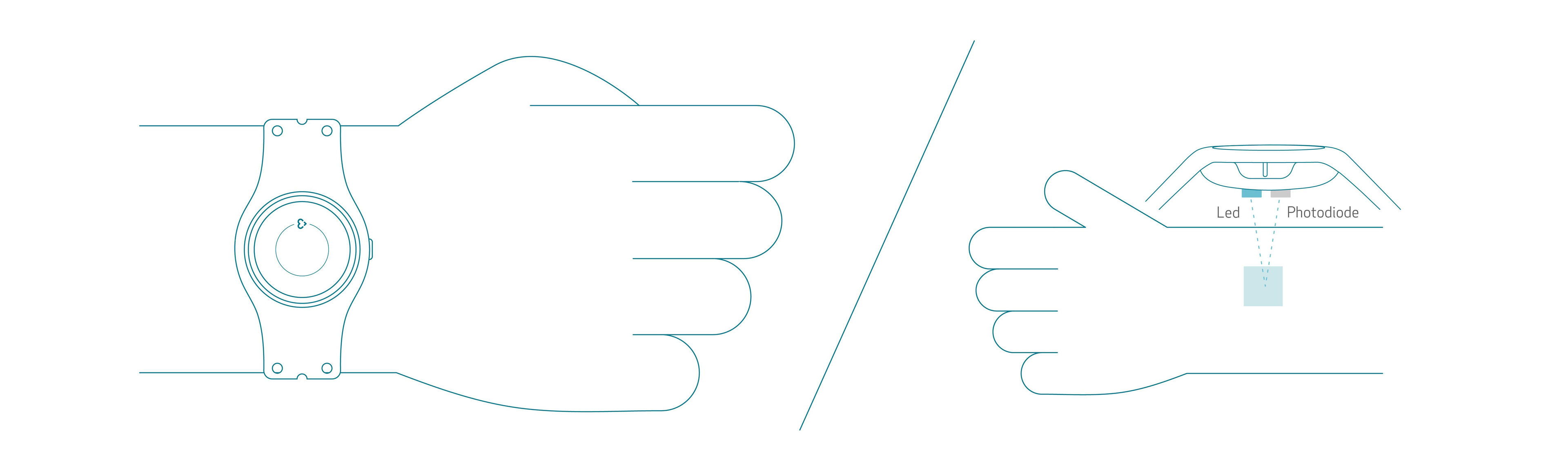 The PPG is an optical technique that measures the perfusion (or how much blood is circulating) through the blood vessels in the tissue under the sensor. Light from an LED is shined onto tissue, usually somewhere where it is comfortable to wear the sensor non-obtrusively, like the wrist. The sensor itself is typically a diode which translates the detected light intensity into the PPG signal: a series of pulses reflecting the pulsatile flow of blood.