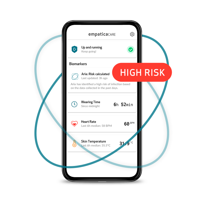 Aria analyzes physiological signals and produces a daily output on a person’s likelihood of being infected. It can be plugged into the Empatica Health Monitoring Platform and provide additional, valuable insight to providers and caregivers, enabling early and crucial intervention, even before symptoms appear.