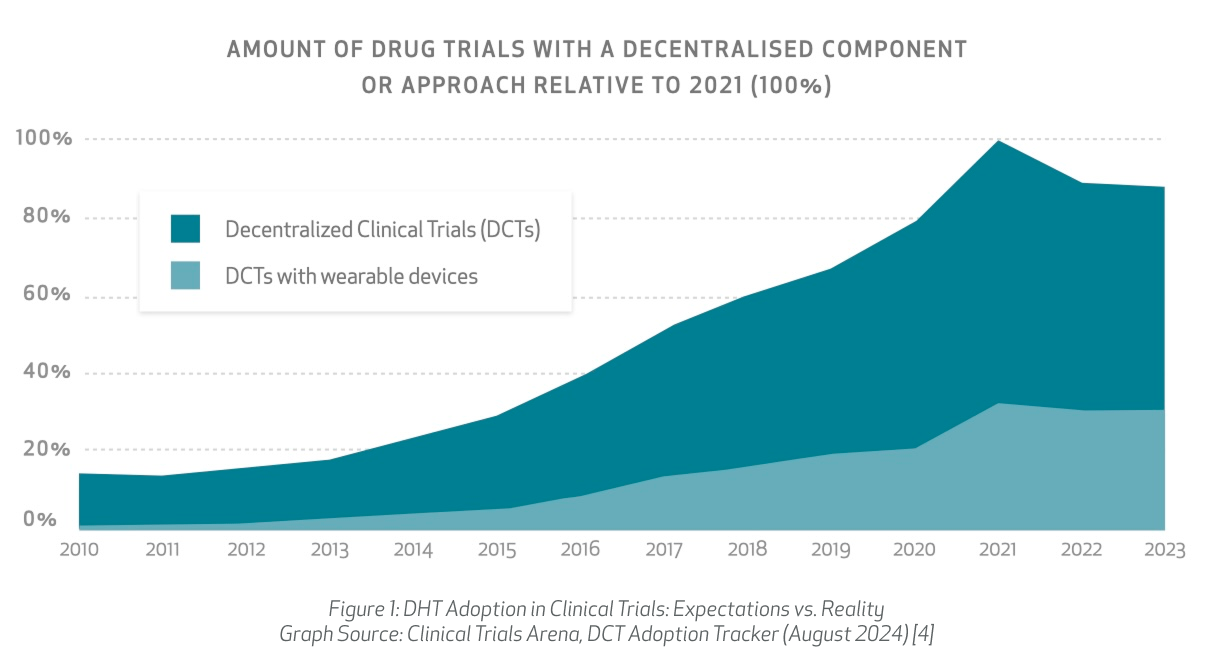 Adoption of digital health technologies (DHTs) in clinical trials is growing, particularly within decentralized and hybrid trial designs. According to current projections, 8% of trials set to complete in 2025 [1] include some form of virtual component, and approximately one-third of those trials use wearable technologies.