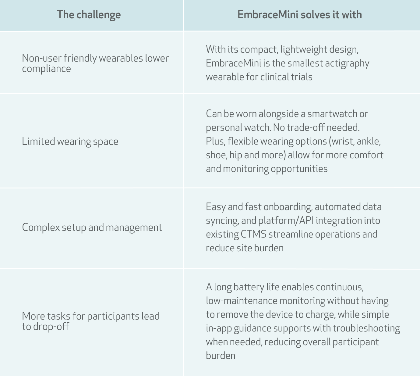 Solving everyday challenges in actigraphy-based clinical trials with EmbraceMini