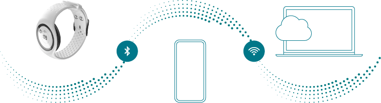 EmbracePlus continuously measures and records physiological parameters, which are sent via Bluetooth® to a dedicated mobile app.